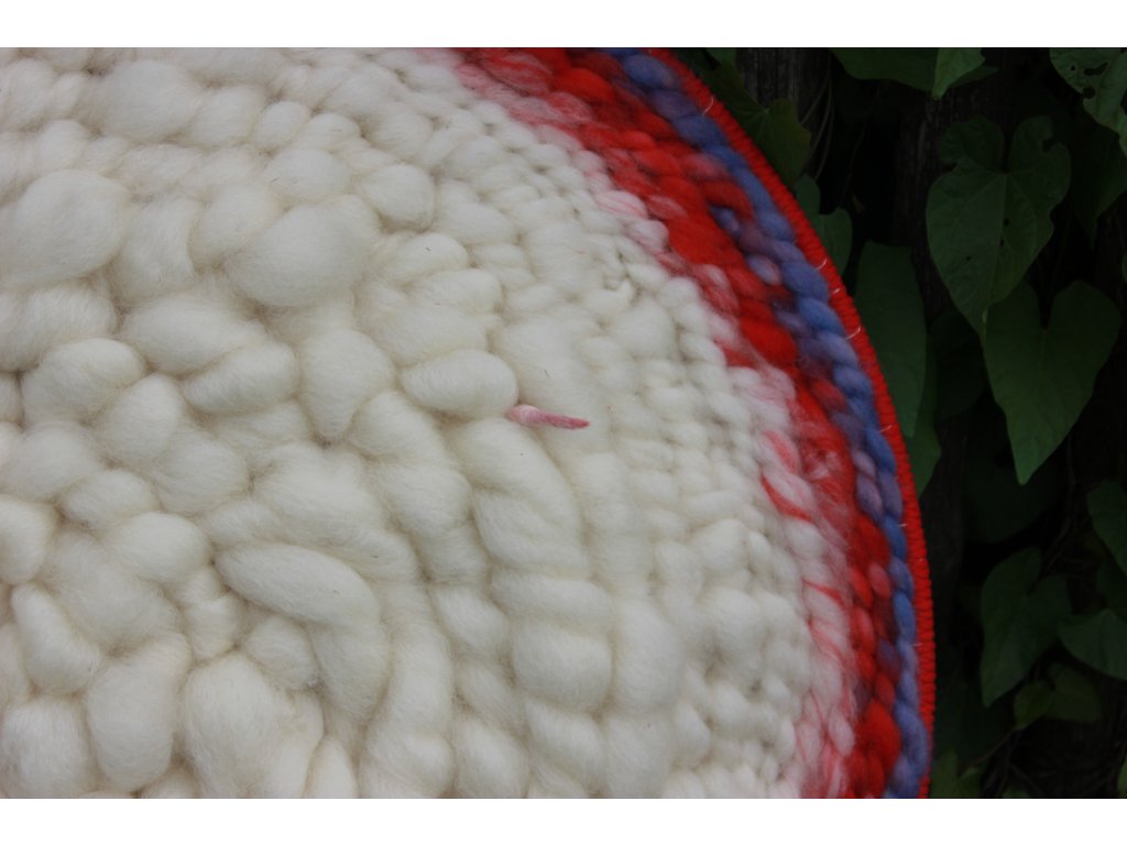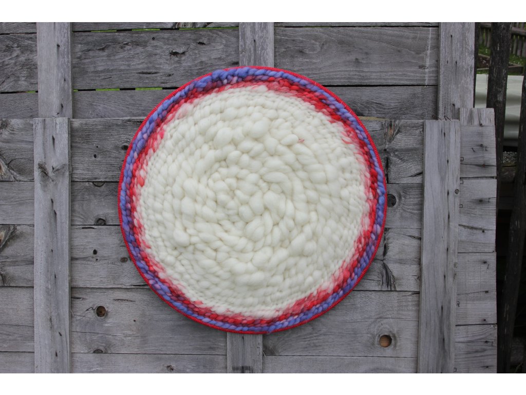 Ještě perlička na závěr: na své si přijdou i tkadleny, moje tkaná kruhová dekorace "Počátek života" z Tkalcovské soutěže 2024 je utkán z této vlny, i když v její bělejší variantě! Ale na barvě nezáleží, takže výzva nebo? (Viz poslední dva obrázky v produktových fotografiích)