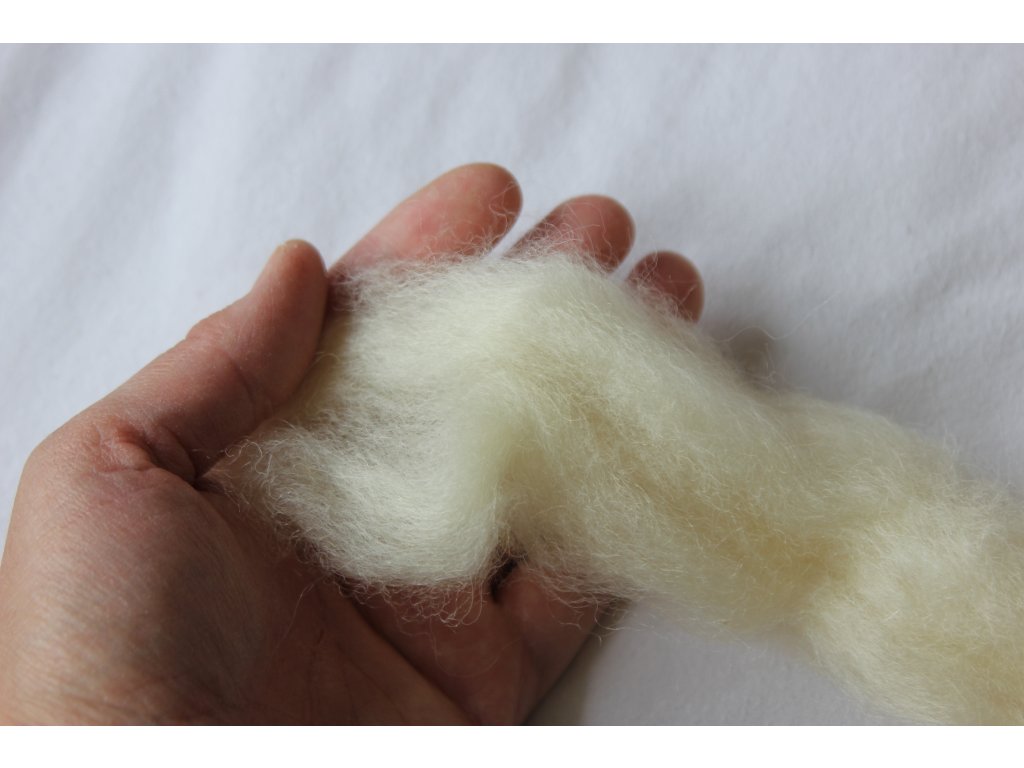Přede se z ní opravdu krásně a pro začínající přadleny je to naprosto ideální kousek, a že mám zkušenosti s vlnou, která se s Vámi při předení pere. Tohle opravdu není ten případ. Vlna je v dlouhém vláknu, které si můžete pro začátek třeba ještě rozdělit na menší úseky! Nebudete tak z počátku s vlnou vůbec zápasit, vlákna jdou krásně rozvolnit, je to prostě radost s takovou vlnou pracovat. Právě pro začínající tkadleny byla tato vlna u mě v obchůdku myšlena.