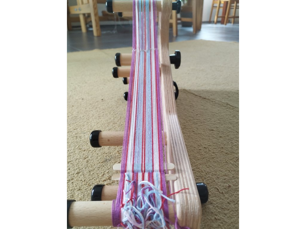 Horní tyč je odnímatelná a poskytuje extra délku osnovy pro karetkové tkaní. Karetky nejsou součástí balení, lze dokoupit zde. Doporučujeme pro tento stav velikost Malé karetky 5 x 5 cm. - Rychlá a snadná montáž