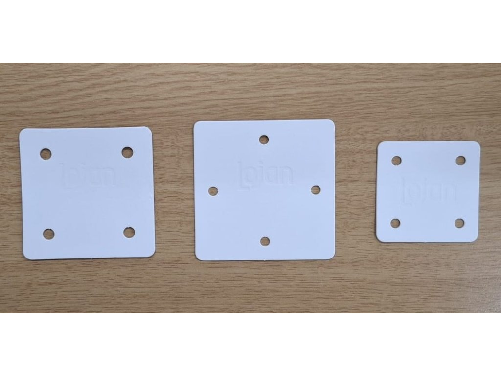 Dvojité (Dvojitá vazba): 7 x 7 cm Karetky mají otvory umístěné uprostřed stran, čímž vzniká dvojitý prošlup. Díky tomu jsou vhodné pro techniky dvojité vazby, jako je čtyřbarevná oblázková vazba nebo islandská dvojitá vazba.