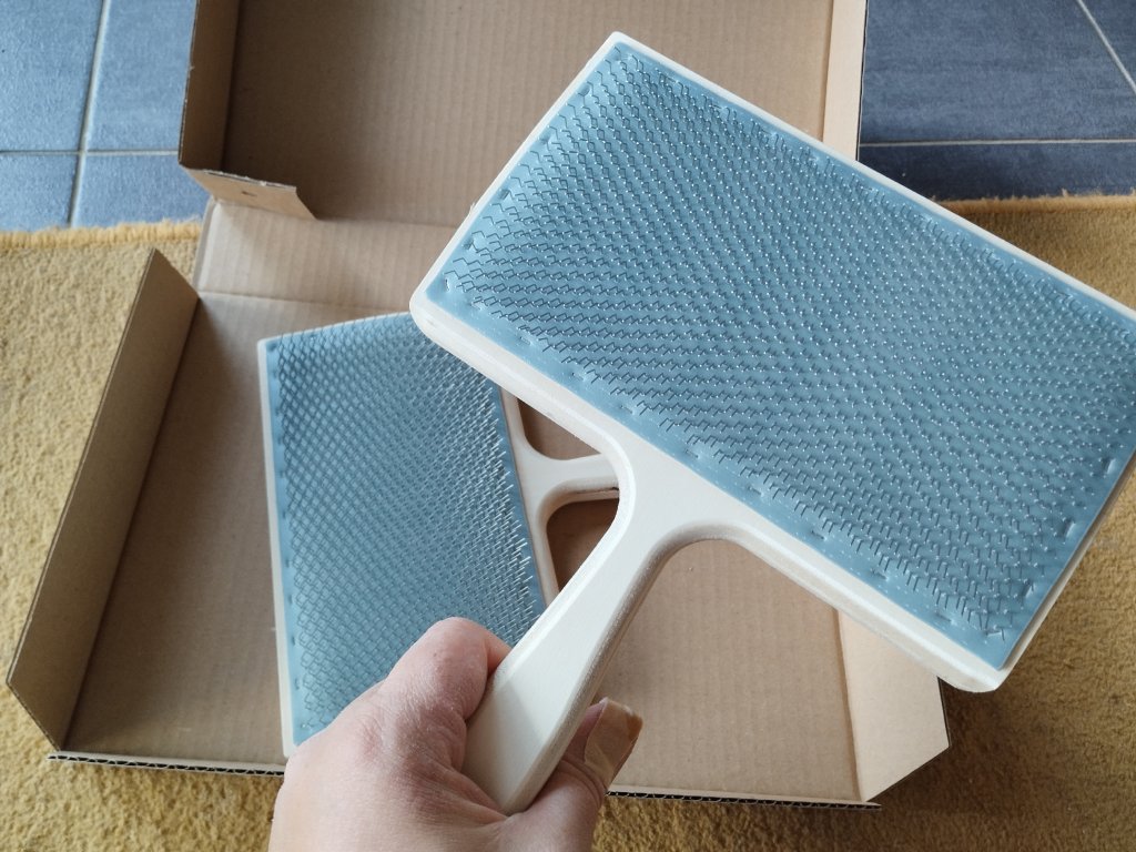 Kartáče jsou vyrobeny z odolné topolové překližky. Mykací plocha měří 19 x 10 cm a má 72 bodů na palec pro jemné a všestranné mykání.