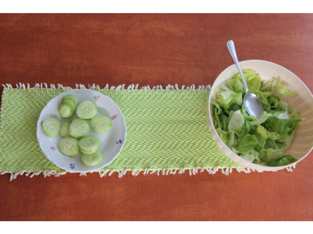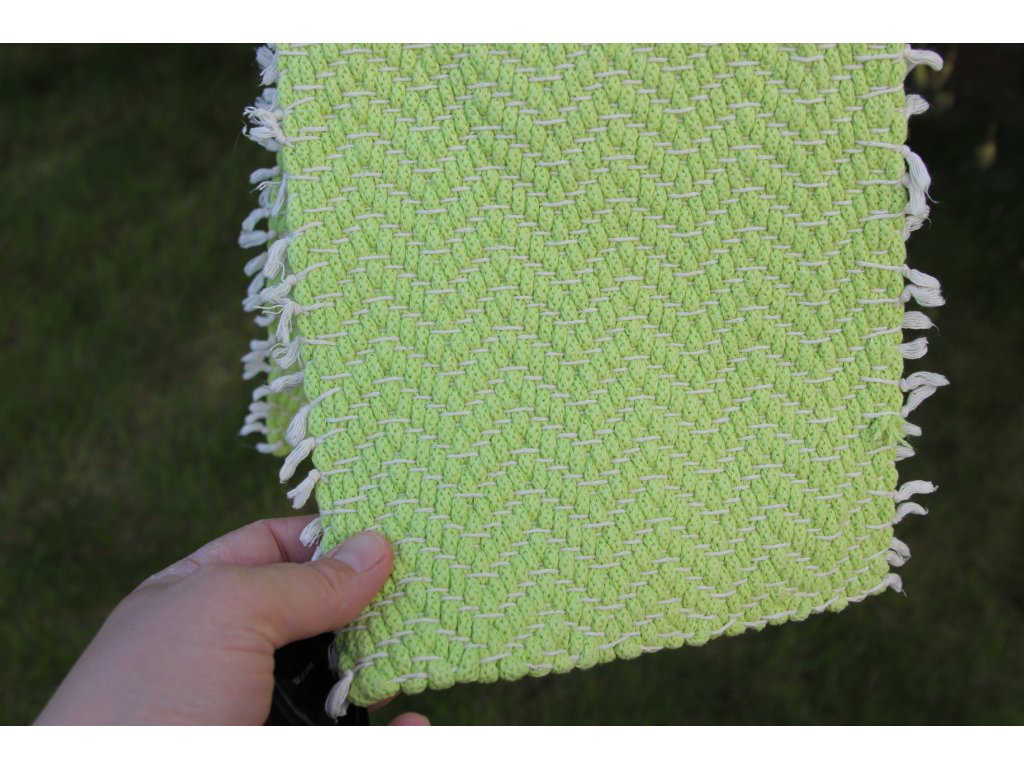 Koberečky na stůl jsou tkané na bavlněné osnově s útkem z bavlněných šňůr Berry.